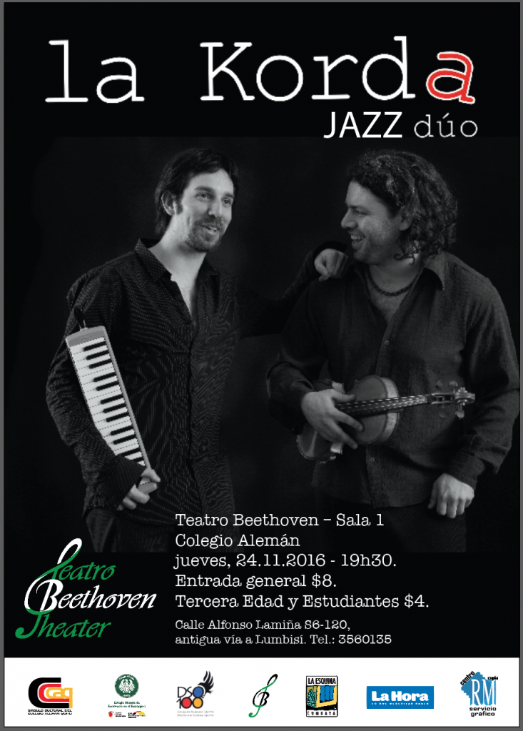 El Colegio Alemán Quito invita cordialmente a un evento cultural: JAZZ – DÚO DE ARGENTINA. GIRA “LATINOAMÉRICA 2016”: Jueves, 24.11.2016