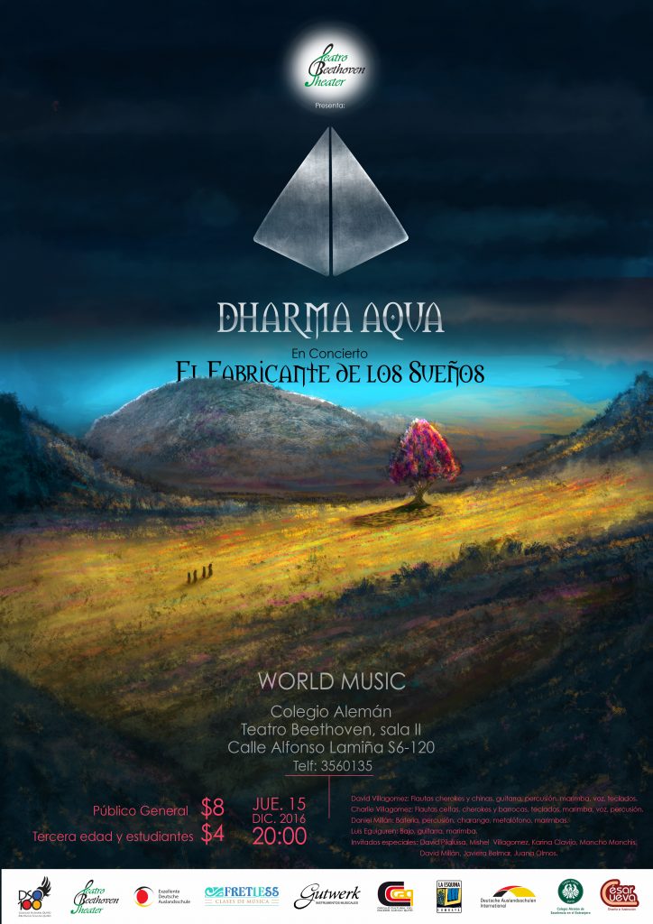El Colegio Alemán Quito invita cordialmente a un evento cultural: DHARMA AQUA – WORLD MUSIC EL FABRICANTE DE LOS SUEÑOS: Jueves, 15.12.2016