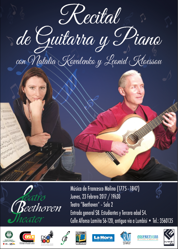 El Colegio Alemán Quito invita cordialmente a un evento cultural: “Recital de Guitarra y Piano” con Natalia Kovalenko y Leonid Kloessov: Jueves, 23.02.2017